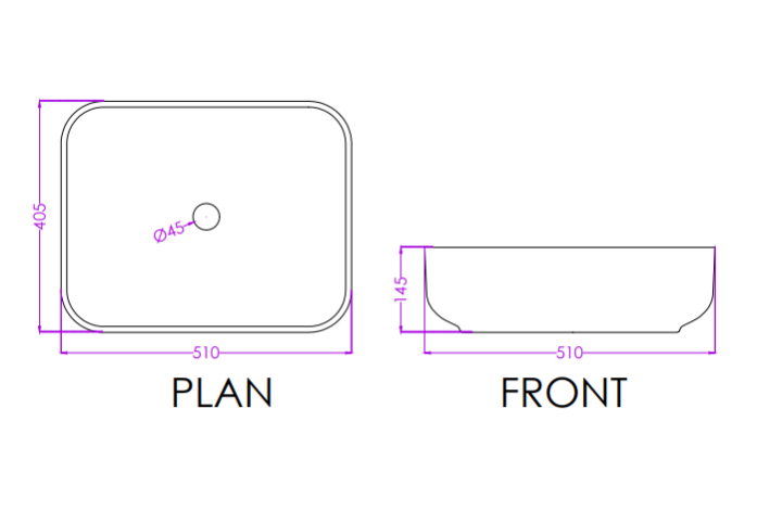 Counter top basin | P73123PW0303 | Dimensions : 505x395x150mm