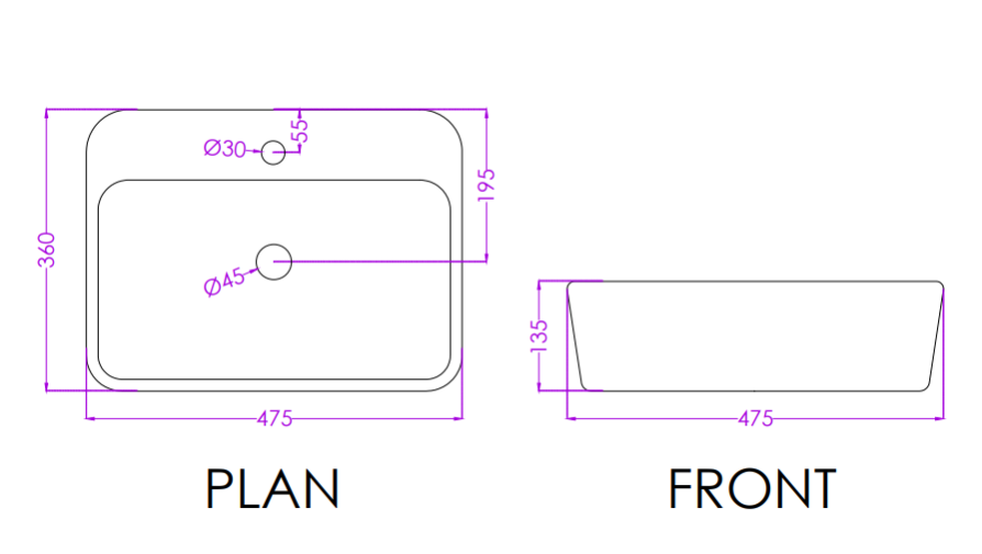 Counter Top Basin | P0414PW0022 | Dimensions : 475x355x130mm