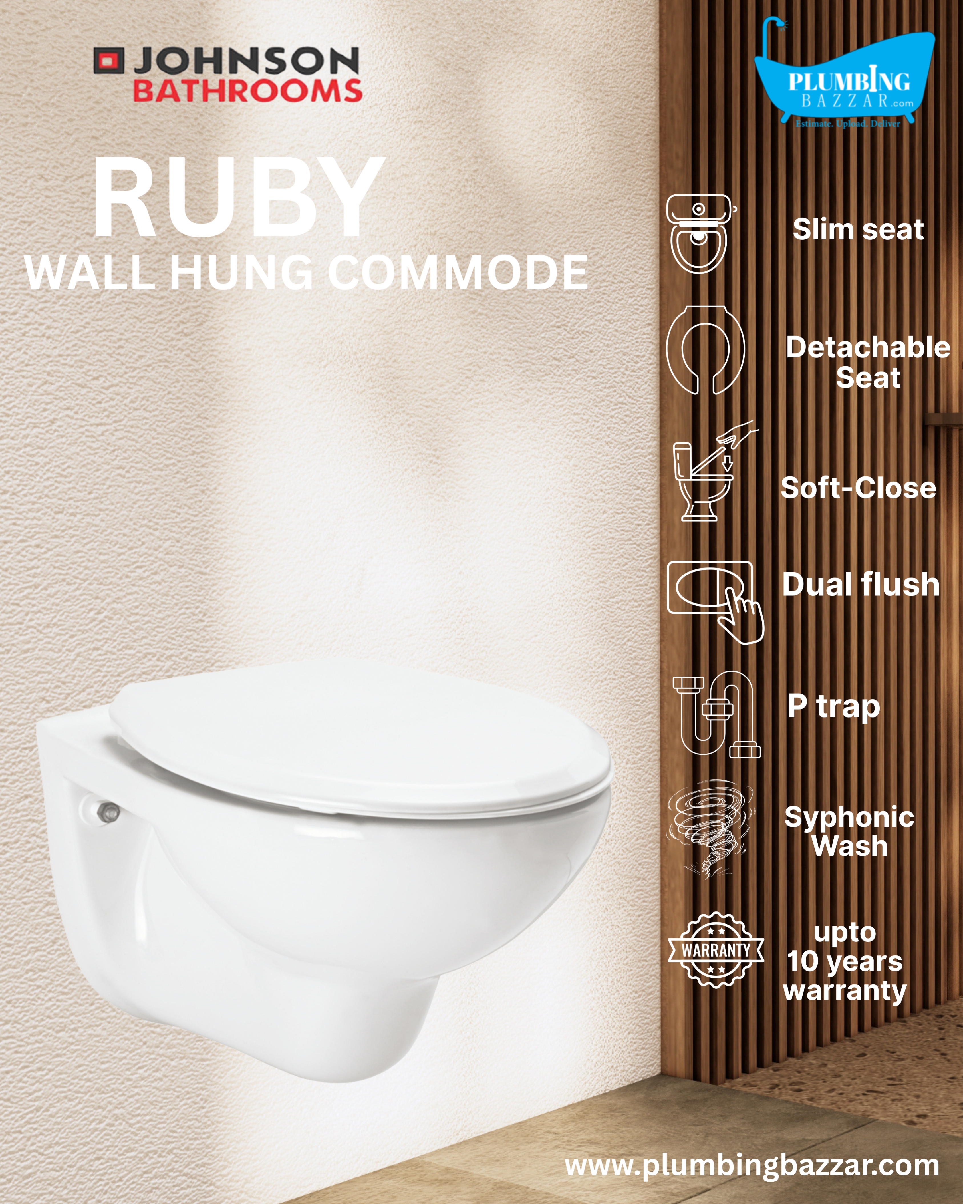 JOHNSON BATHROOMS RUBY WALL HUNG COMMODE
