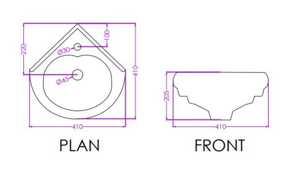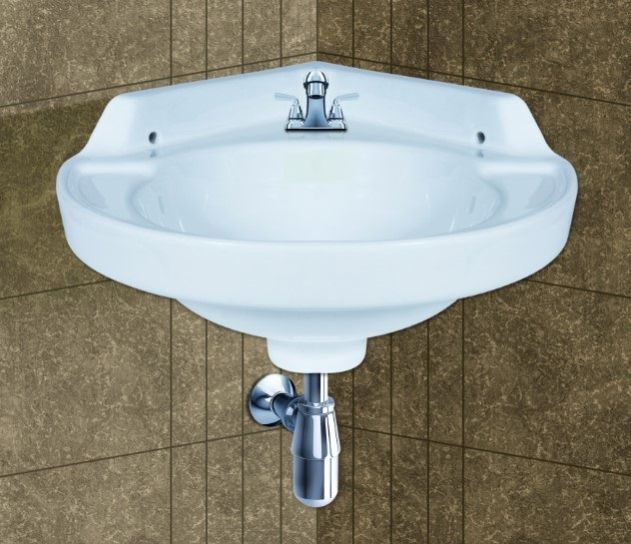 Corner Wall Hung Wash Basin | P0445PW0104 | Dimensions : 400x400x205mm