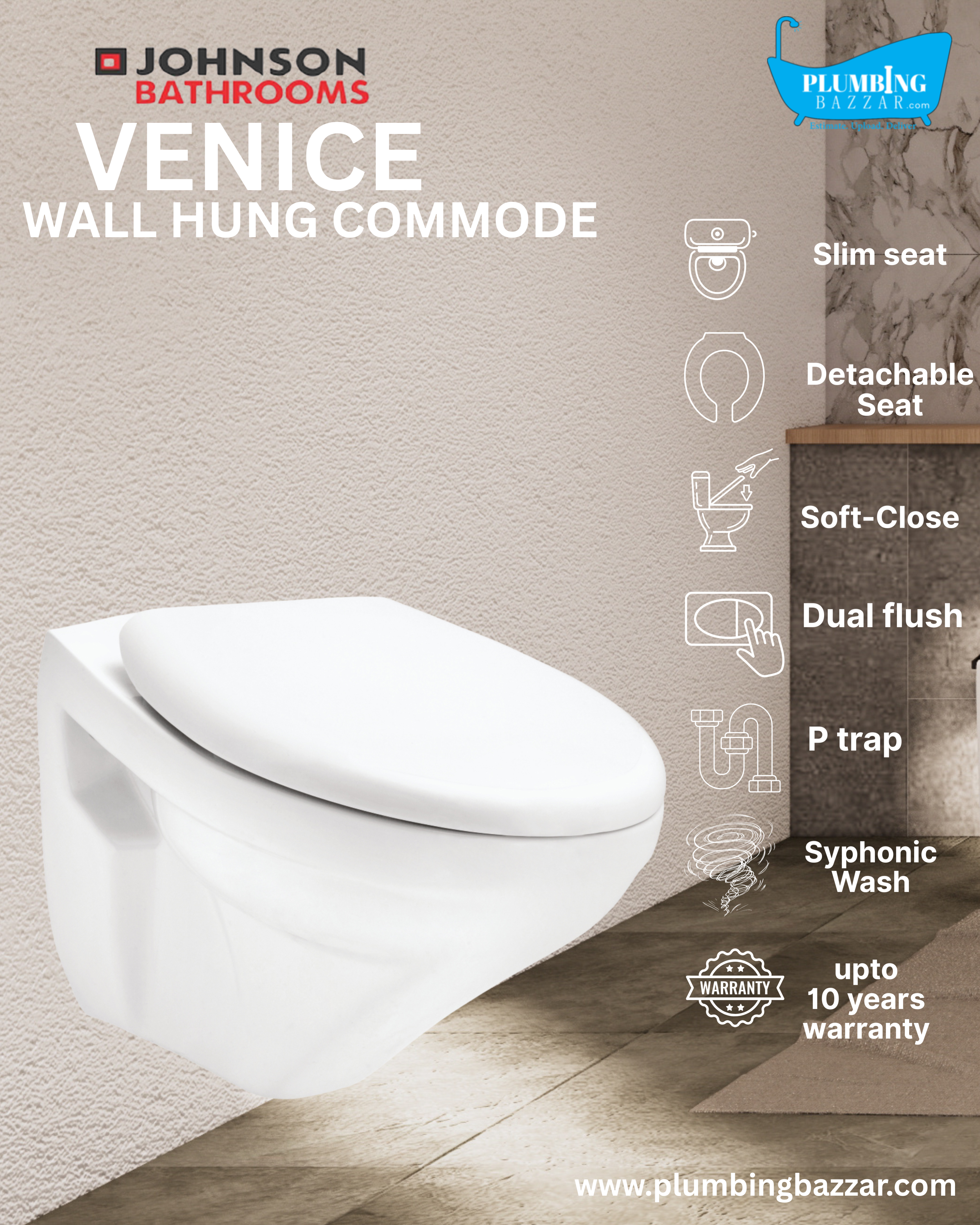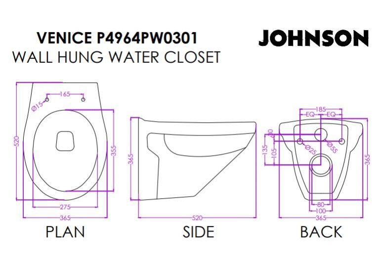 JOHNSON BATHROOMS VENICE WALL HUNG COMMODE