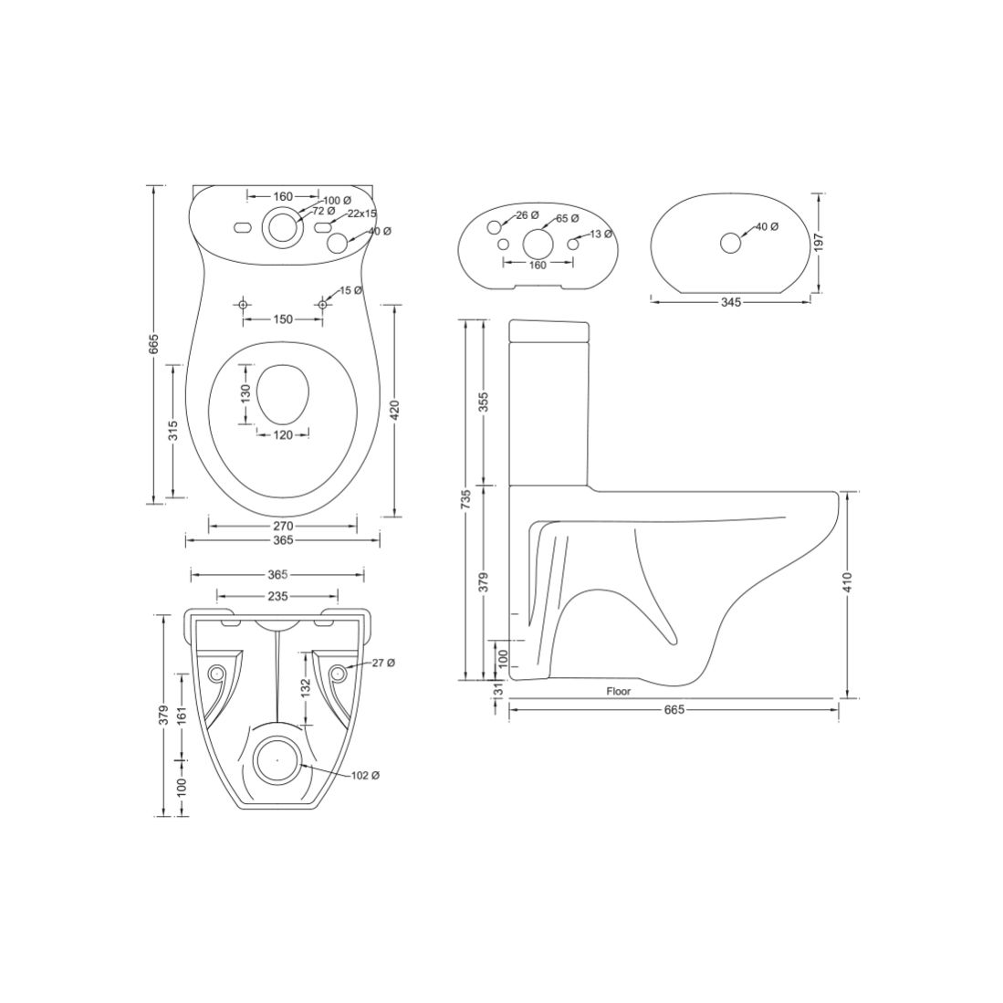 P-Trap : 130mm / 13cm / 5”