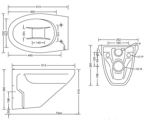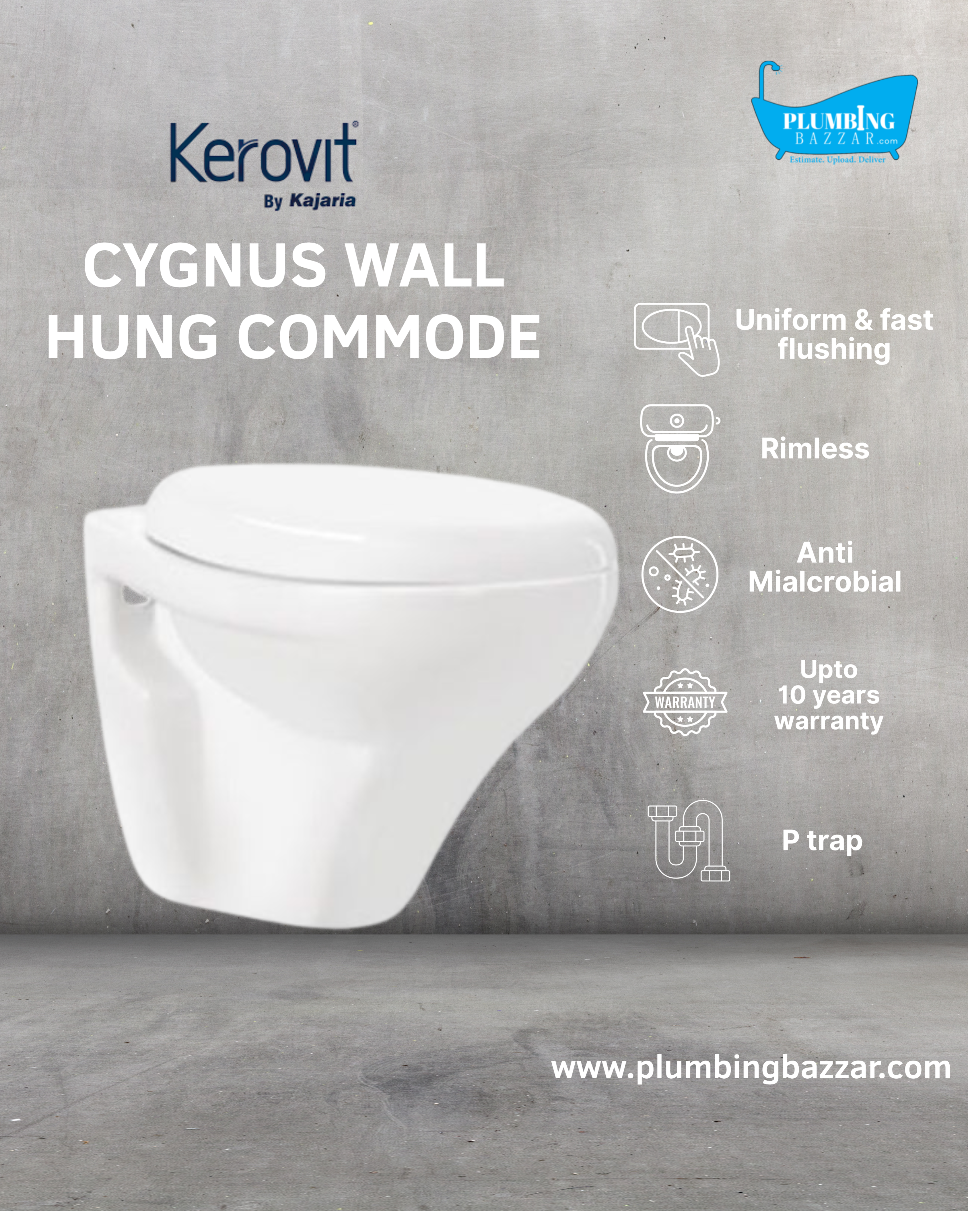 Wall Hung Toilet Seat in White | KS101 | Size : 513x352x360 mm, P-Trap : 230 mm PP Soft Close Seat Cover : KB007E