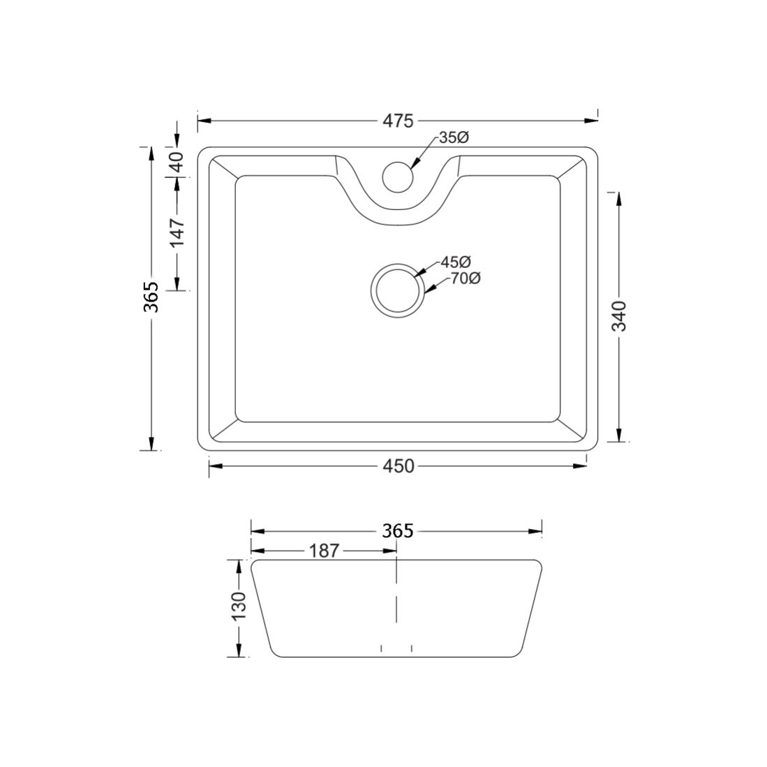 Counter top wash basin | KS231 | Size : 477x370x131 mm