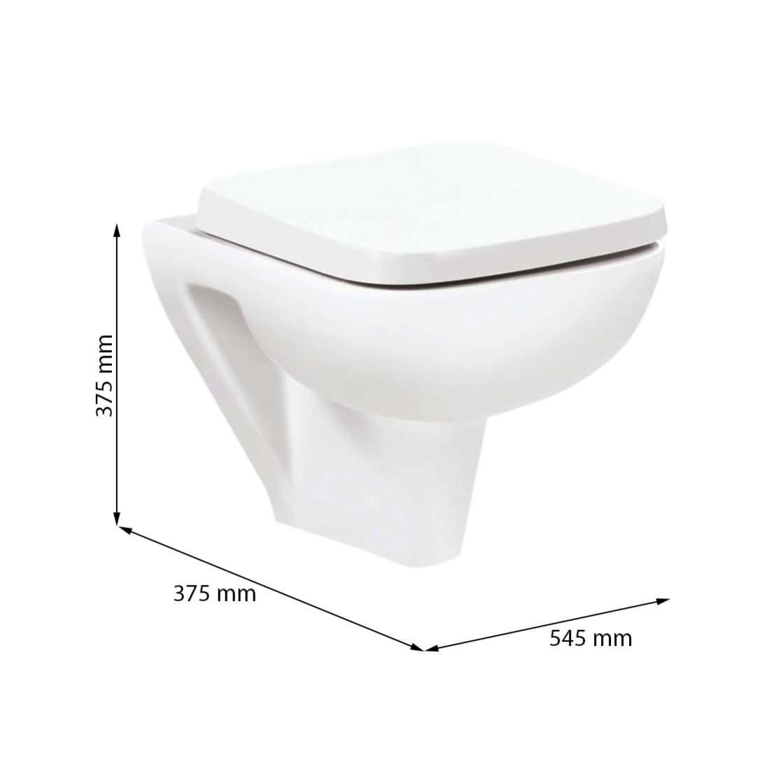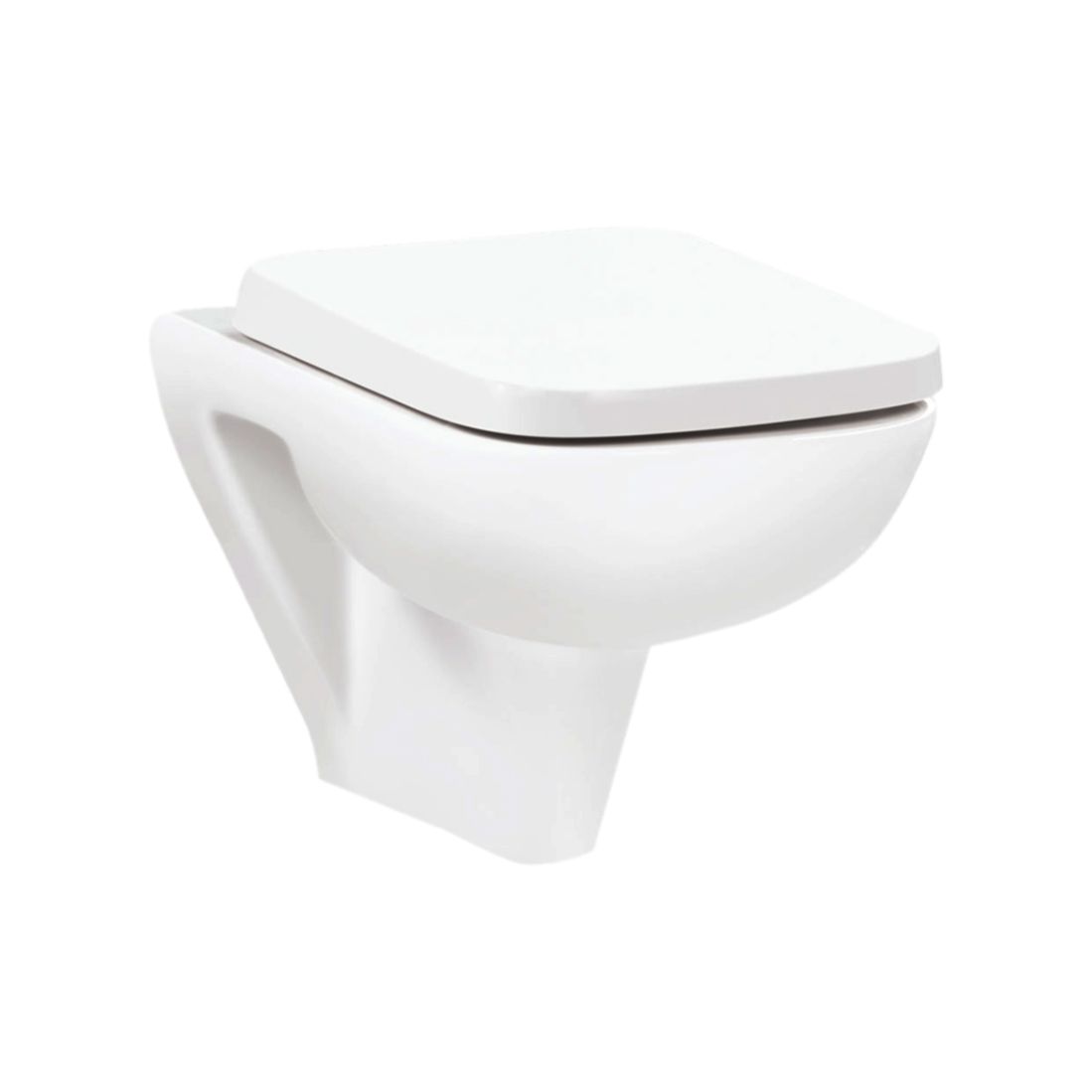 Wall Hung Toilet Seat (Set) in White | KS102 | Size : 534x365x360 mm, P-Trap : 215 mm , PP Soft Close Seat Cover : KB056