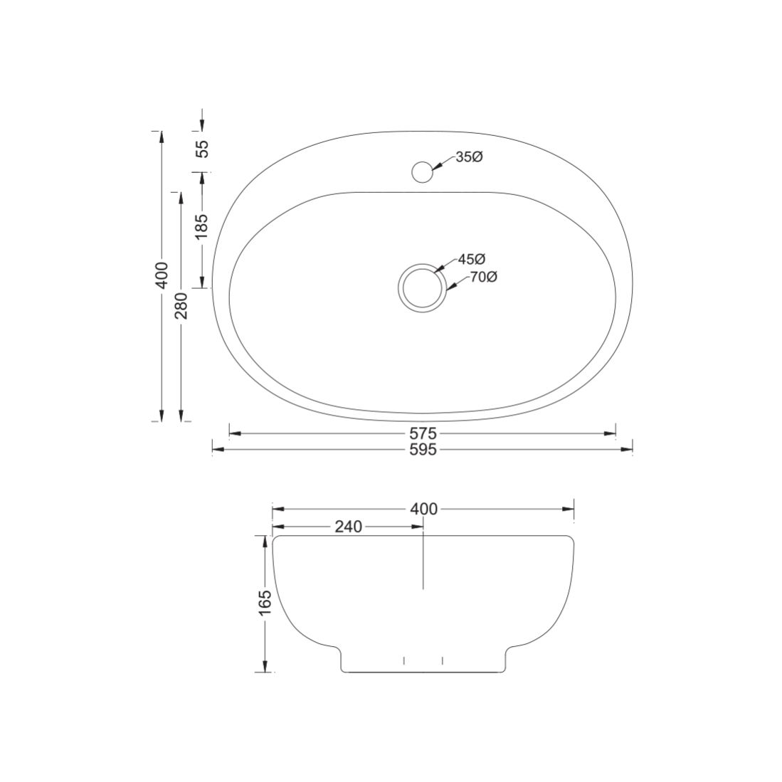 Counter Top Wash Basin | KS251 | Size : 595x400x165 mm