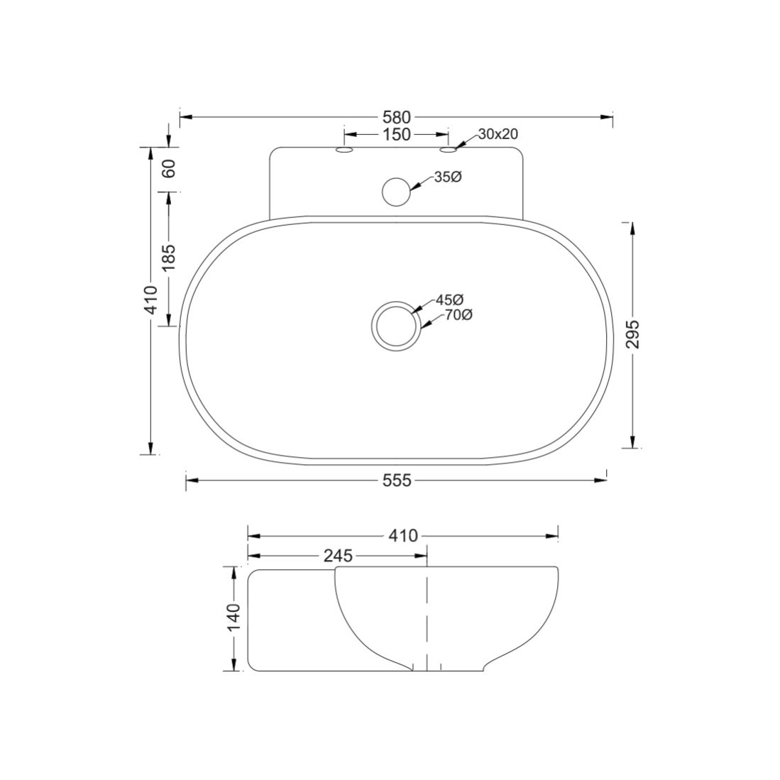 Counter Top wash basin | KS246 | Size : 568x400x139 mm