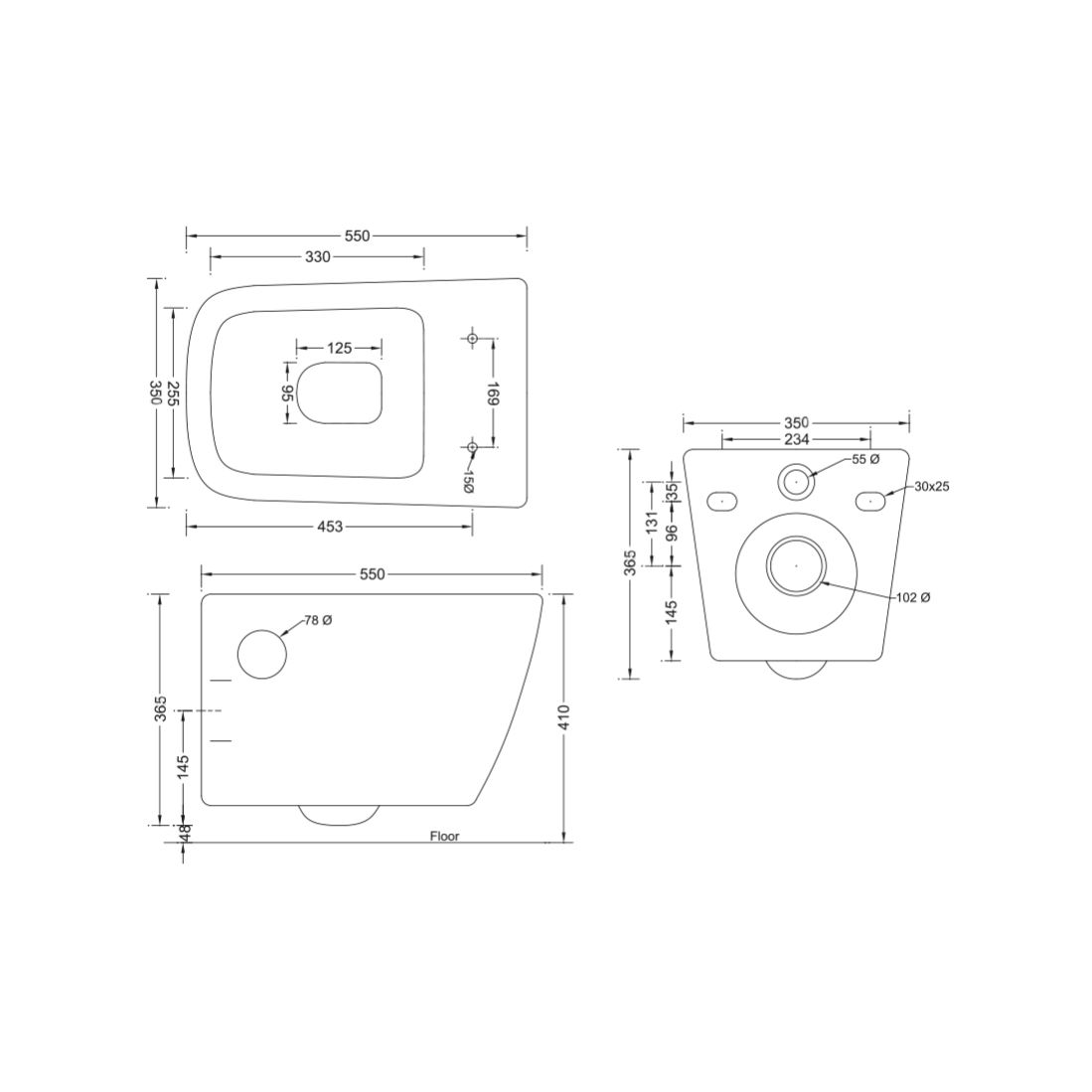 Wall Hung Toilet Seat ( set ) in white | KS134 | Size : 550x355x362 mm , P-Trap : 230 mm | PP Soft Close Seat Cover : KB038