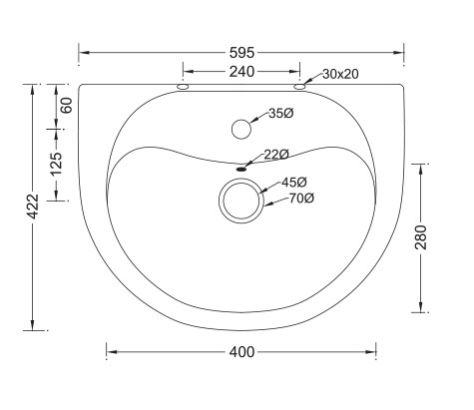Wall Hung Wash Basin | KS238 | Basin Size : 592x422x192 mm