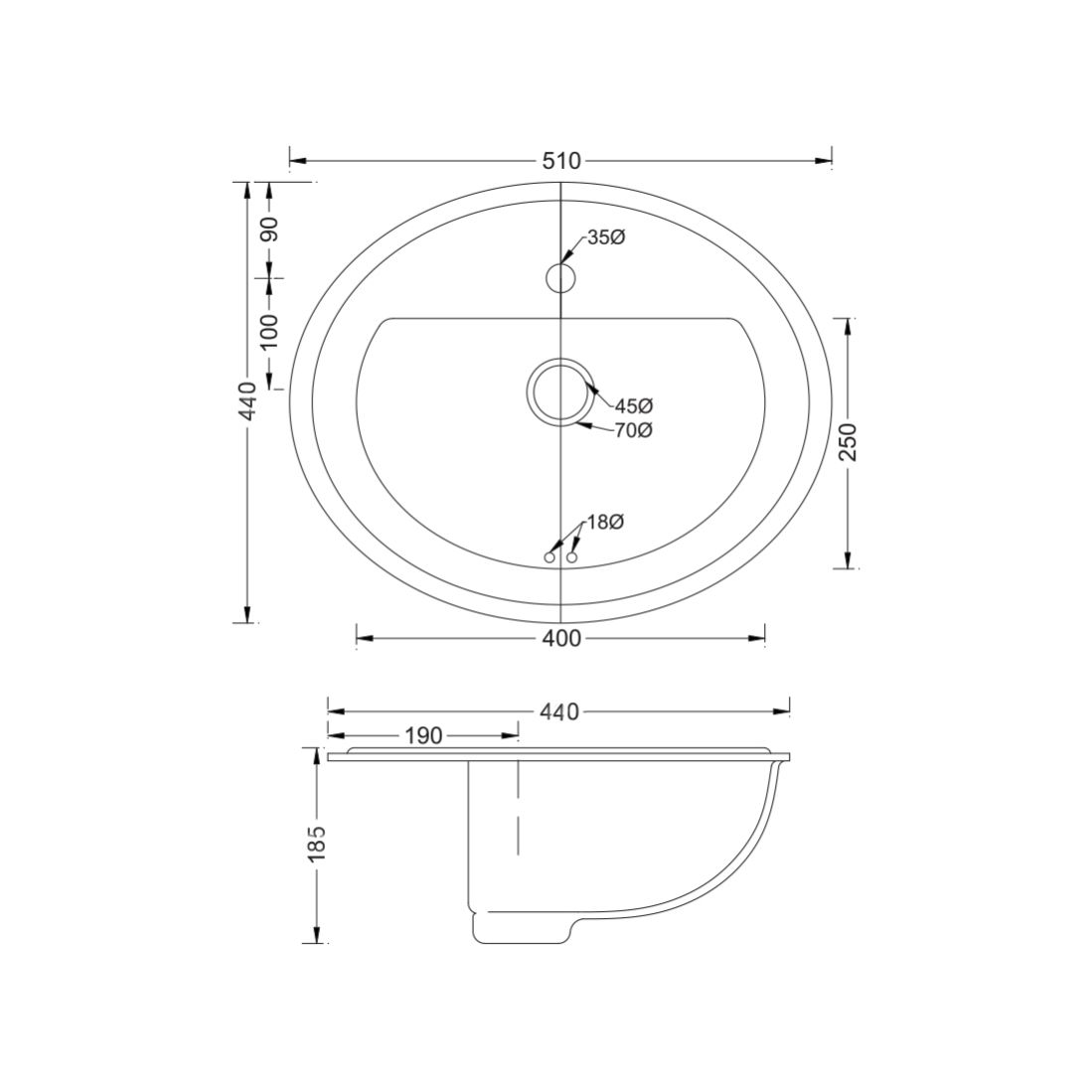 Over Counter Wash Basin in | KS205 | Size : 510x438x193 mm