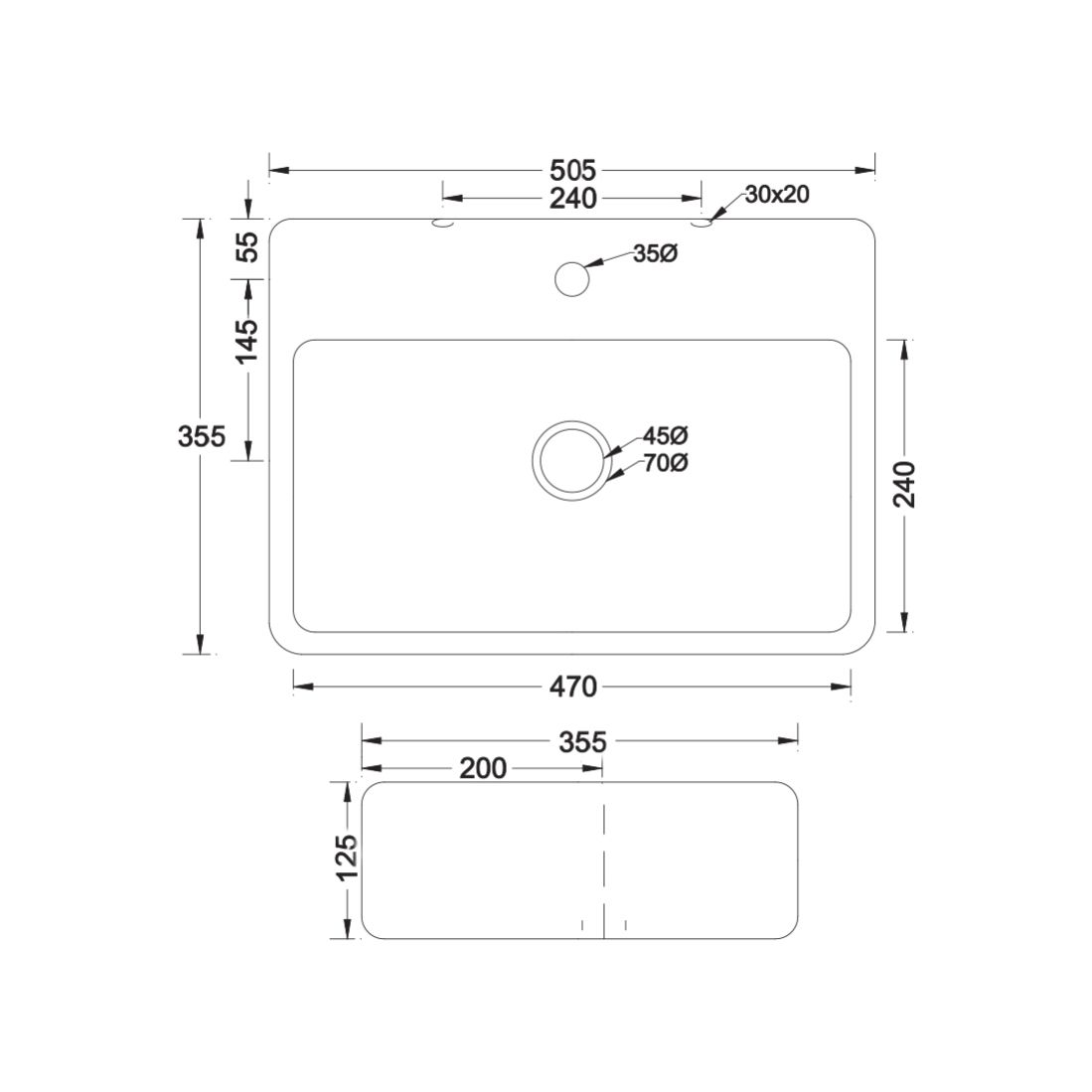 Counter Top wash basin | KS250 | Size : 512x356x130 mm
