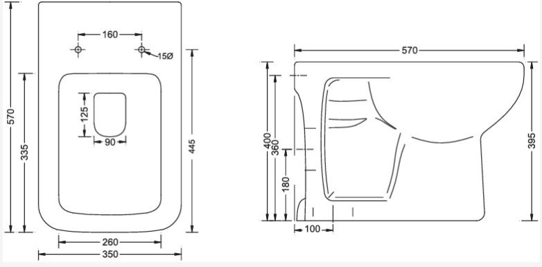 Close Couched Closet (Back to Wall) (Set) in white with PP Soft Close Seat Cover | KB056 | KS117 | Size : 570x350x400 mm