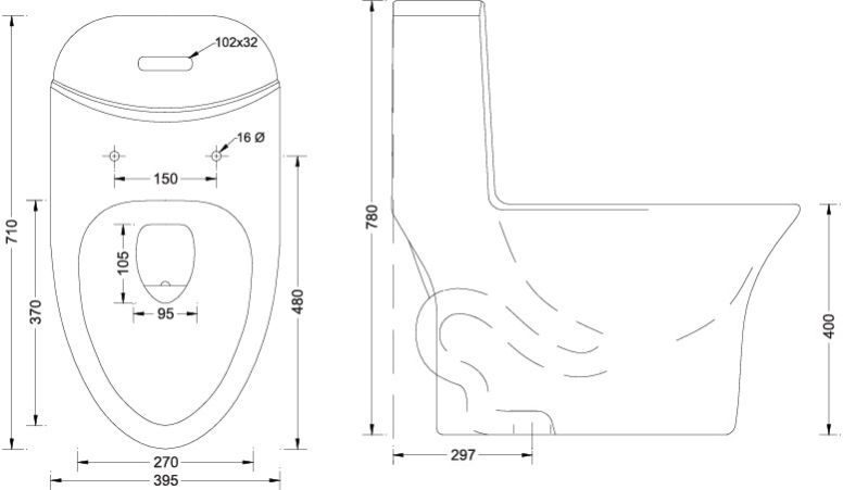 Siphonic One Piece Toilet | KB3026 | Size: 710x395x780 mm | S-Trap 220/300 mm