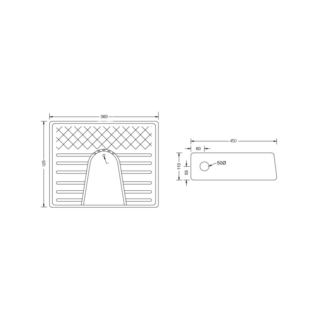 Squatting Urinal (female) in white | KO509 | Size : 455x365x110 mm