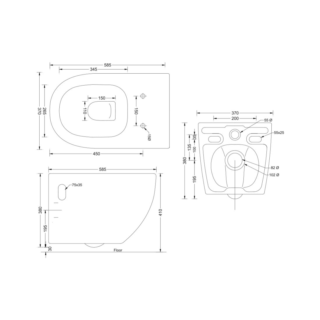 Washdown Wall Hung Closet Rim- Free in warranty | KB2141E-R | Size : 580x370x380 mm, P-Trap : 180mm