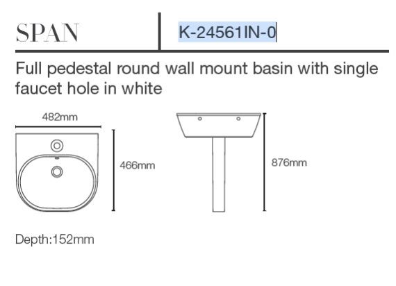 KOHLE SPAN ROUND FULL PEDESTAL BASIN