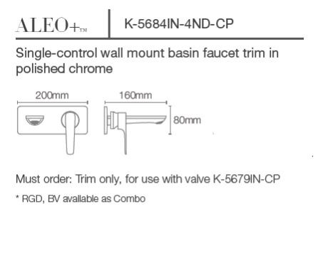Wall Mount Basin Faucet Trims | K-5684IN-4ND-CP / AF / BL Diverter