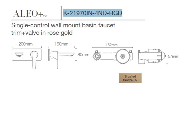 Combo Wall Mount Basin Faucet Trim + Valve | K-21970IN-4ND-BV / RGD | Hot & Cold basin mixer