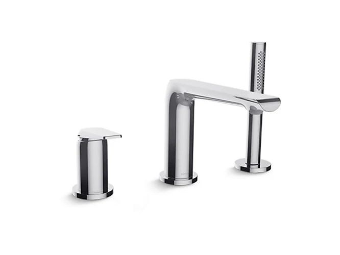 Deck-mount bath tub filler with hand shower | K-97360T-B4-CP | polished chrome |