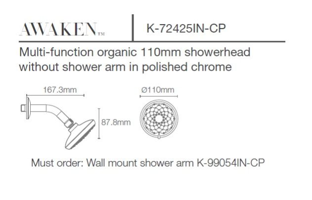 Organic Multi-Mode Showerhead | K-72425IN-CP | With Shower Arm