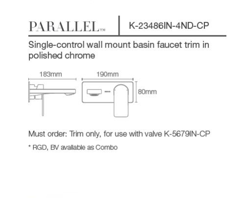 Wall Mount Basin Faucet Trim | K-23486IN-4ND-AF/ CP