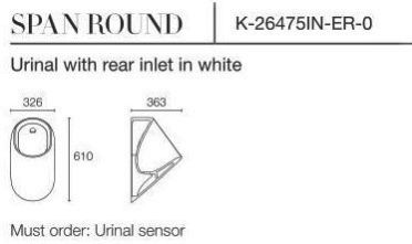 Urinal with rear inlet in white | K- 26475IN-ER-0 | Size: 326mm x 363mm x 616mm