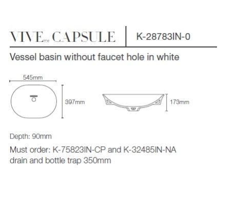 KOHLER VIVE CAPSULE 545mm BASIN