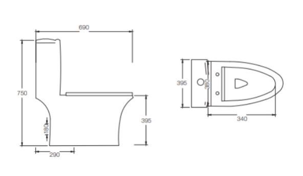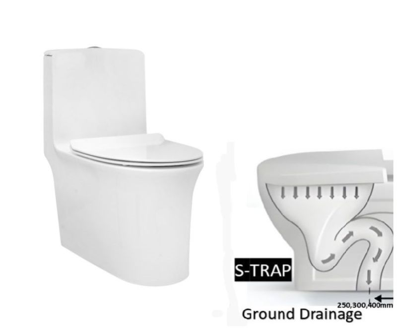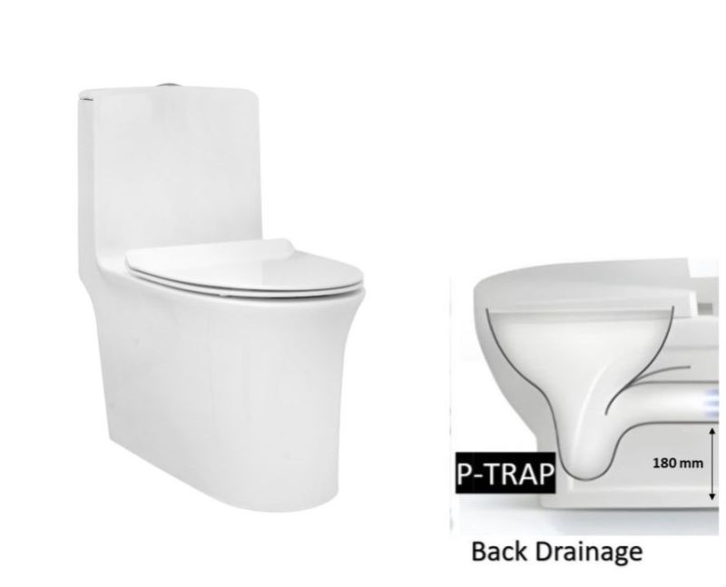 Rimless Single Piece Commode | C8901 / C8902 / C8919 | Size: 690 x 395 x 750mm | S Trap- 290 mm / S Trap- 220 mm / P Trap- 180mm