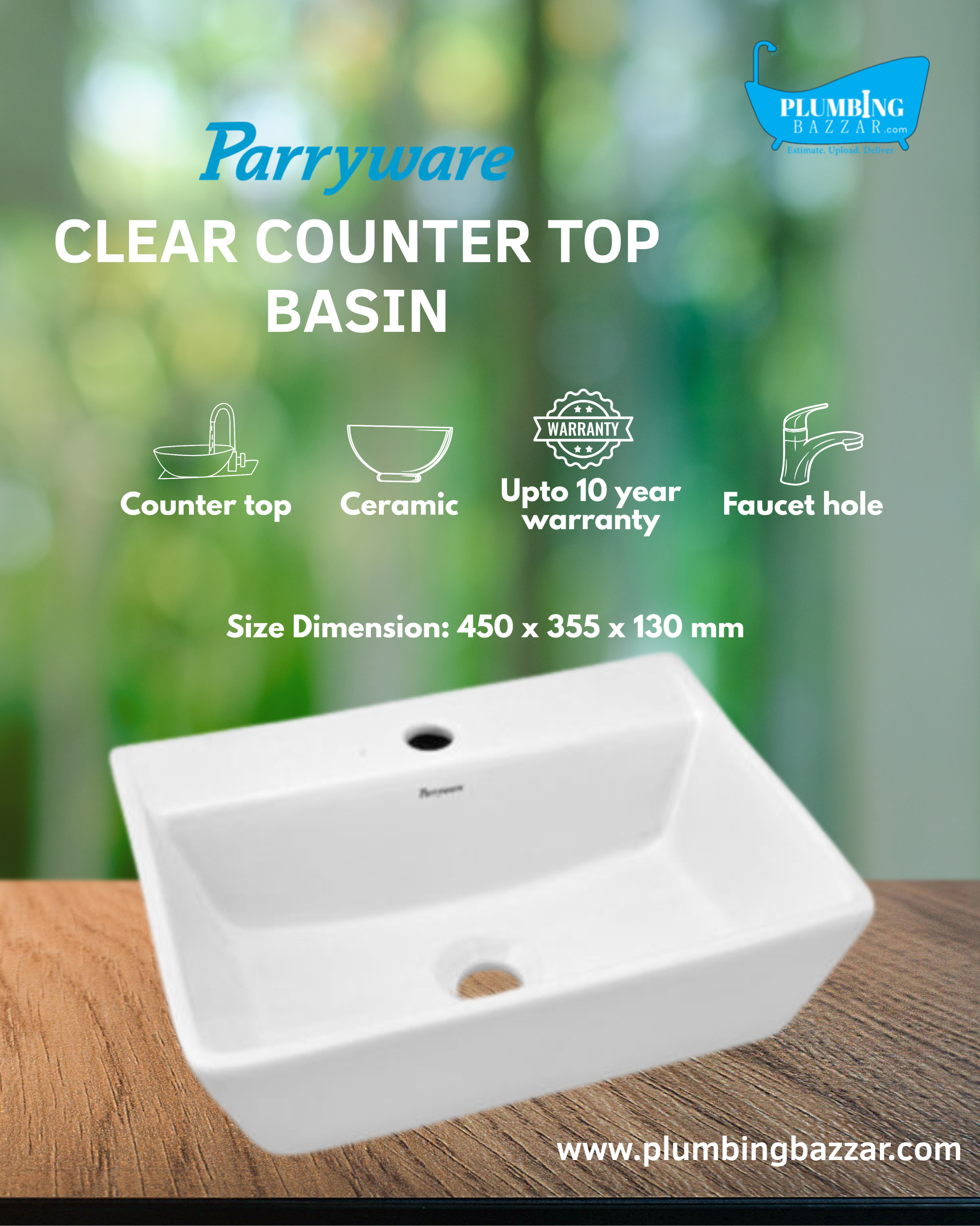 Product Type: Table Top Rectangle Shaped White Wash Basin With 1 Faucet Hole