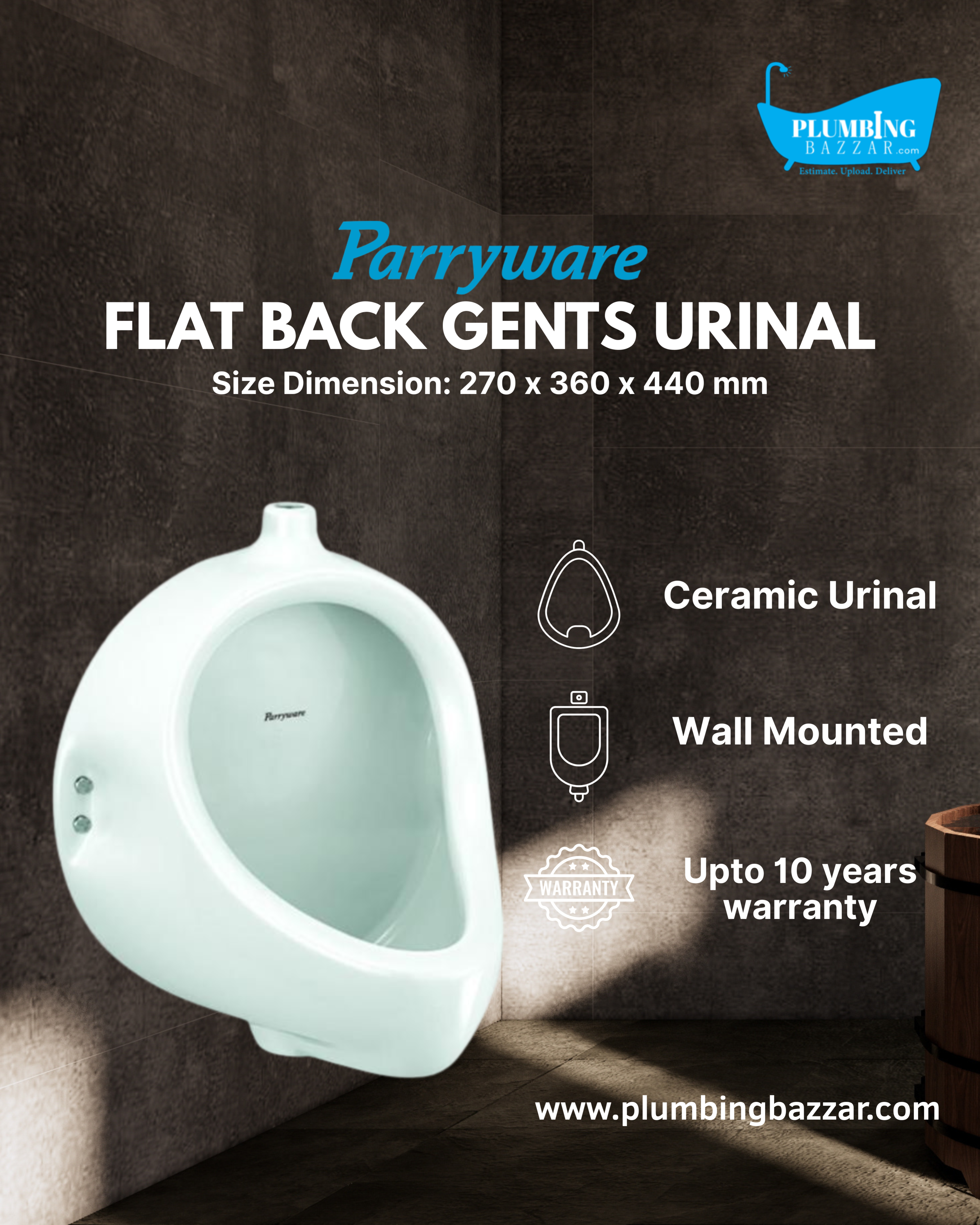 Flat Back Urinal In White | C0501 | Size: 270 x 360 x 440 mm