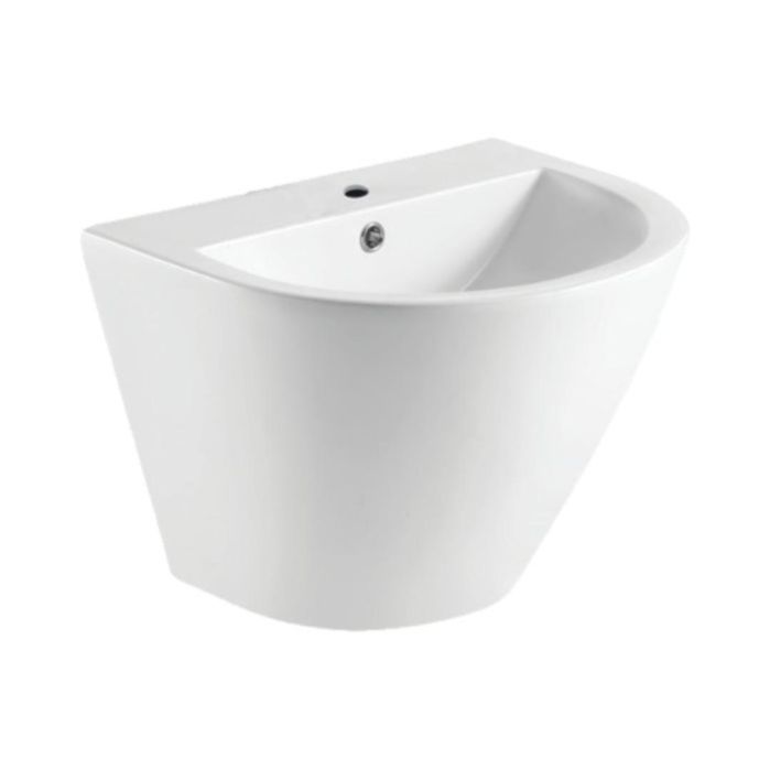 Product Type: Wall Hung Integrated Semi Round Shaped White Wash Basin With 1 Faucet Hole