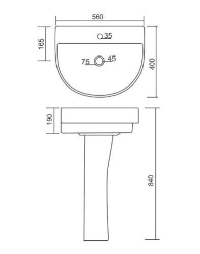 Full Pedestal Basin | C898G(Basin)/C898H(Pedestal) | Size: 560 x 410 x 770 mm