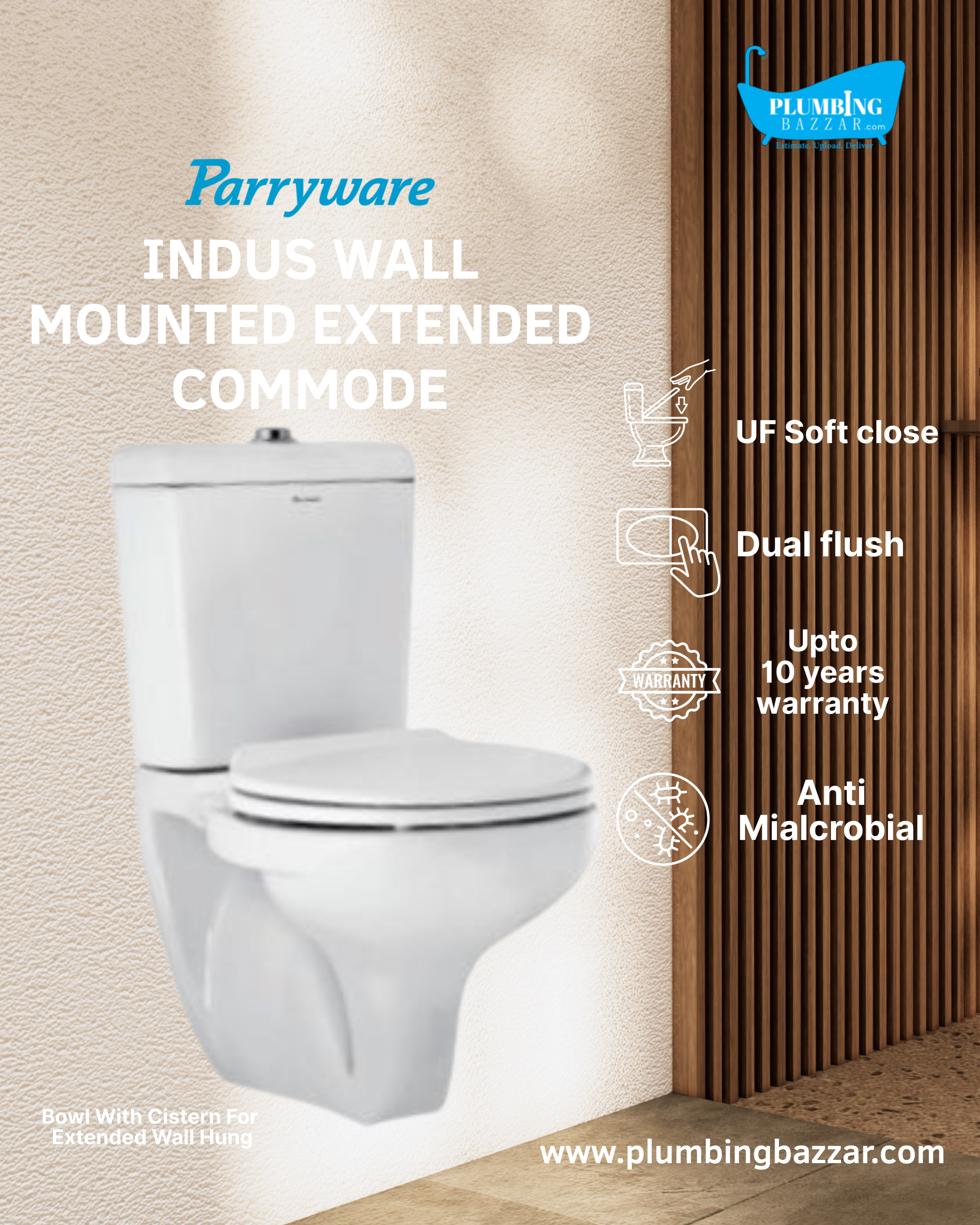 PARRYWARE INDUS WALL MOUNTED EXTENDED COMMODE