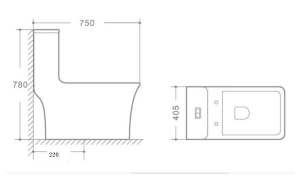 Rimless Single Piece Commode | C8935 / C8905 | Size: 750 x 405 x 780mm / 710 x 365 x 750mm, S Trap- 220 mm / 290 mm