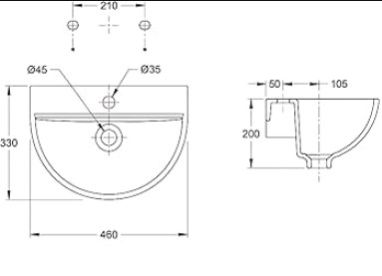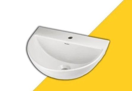 Product Type: Wall Hung White Wash Basin Semi Round Shaped With