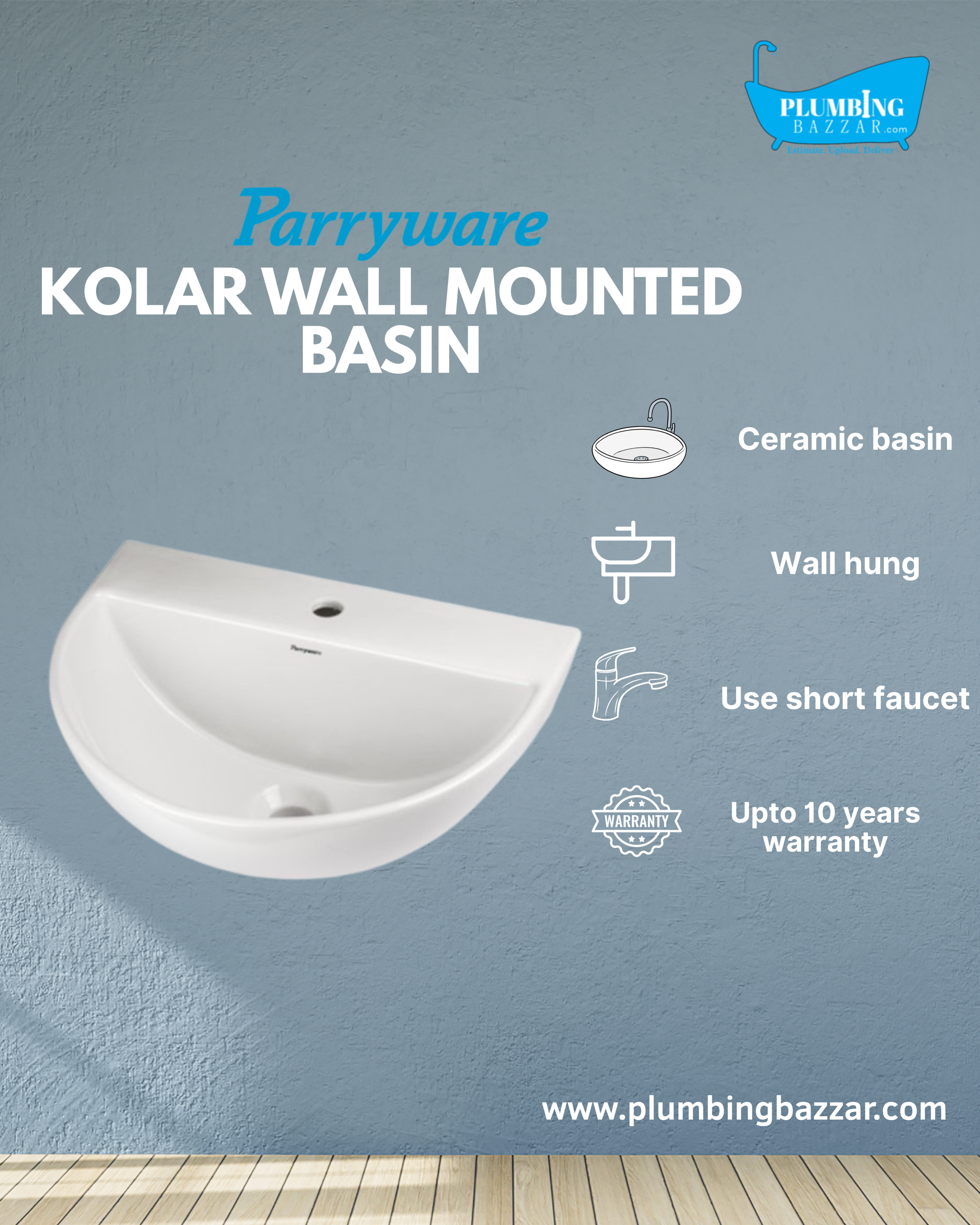PARRYWARE KOLAR WALL MOUNTED BASIN