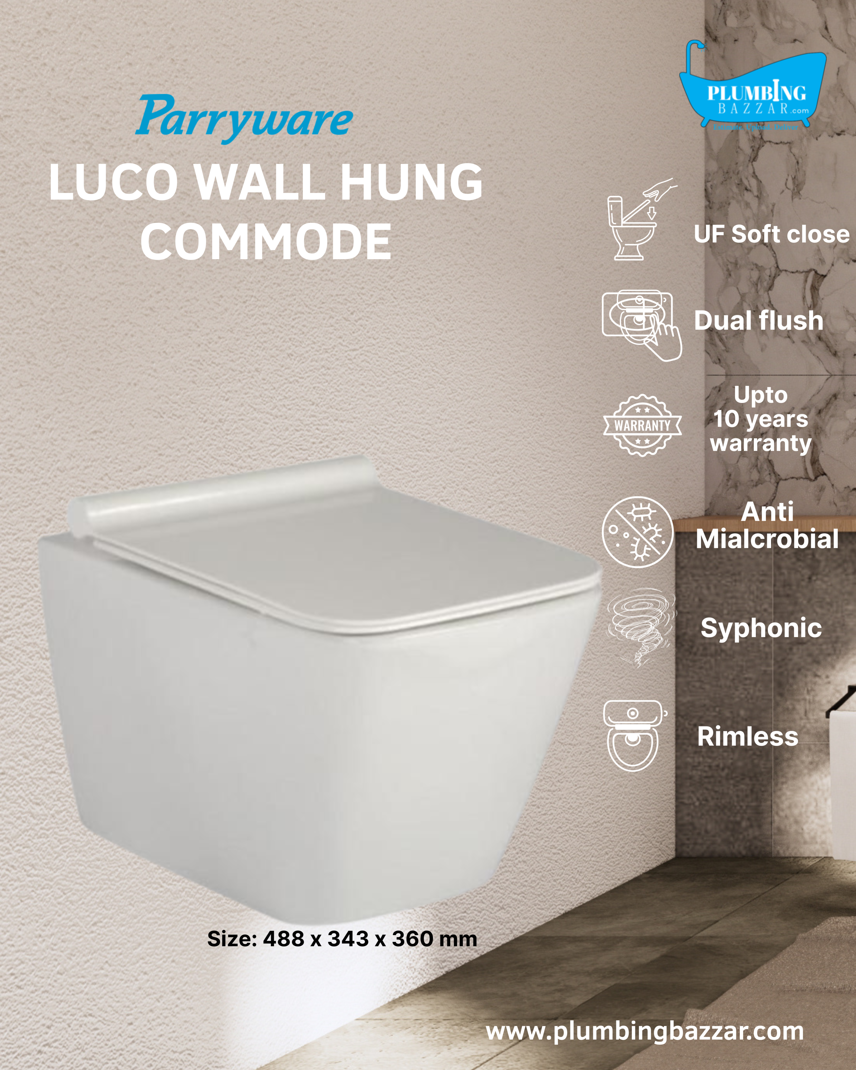 Product Type: Rimless Wall Hung Dual Flush WC With UF Soft Close Slim Seat Cover