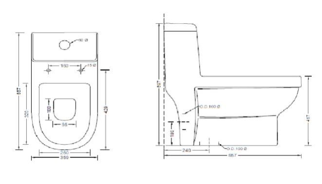 Product Type: Single Piece Dual Flush WC With UF Soft Close Slim Seat Cover