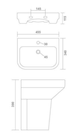Half Pedestal Basin | C8982(Basin)/C8989(Pedestal) | Basin: 460 x 340 x 160 mm | Pedestal: 240 x 310 x 185 mm