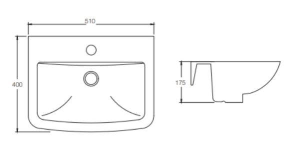 Half Pedestal Basin | C041X (Basin),Size: 510 x 400 x175mm / C0320 (Short Pedestal), Size: 275 x 215 x 360mm