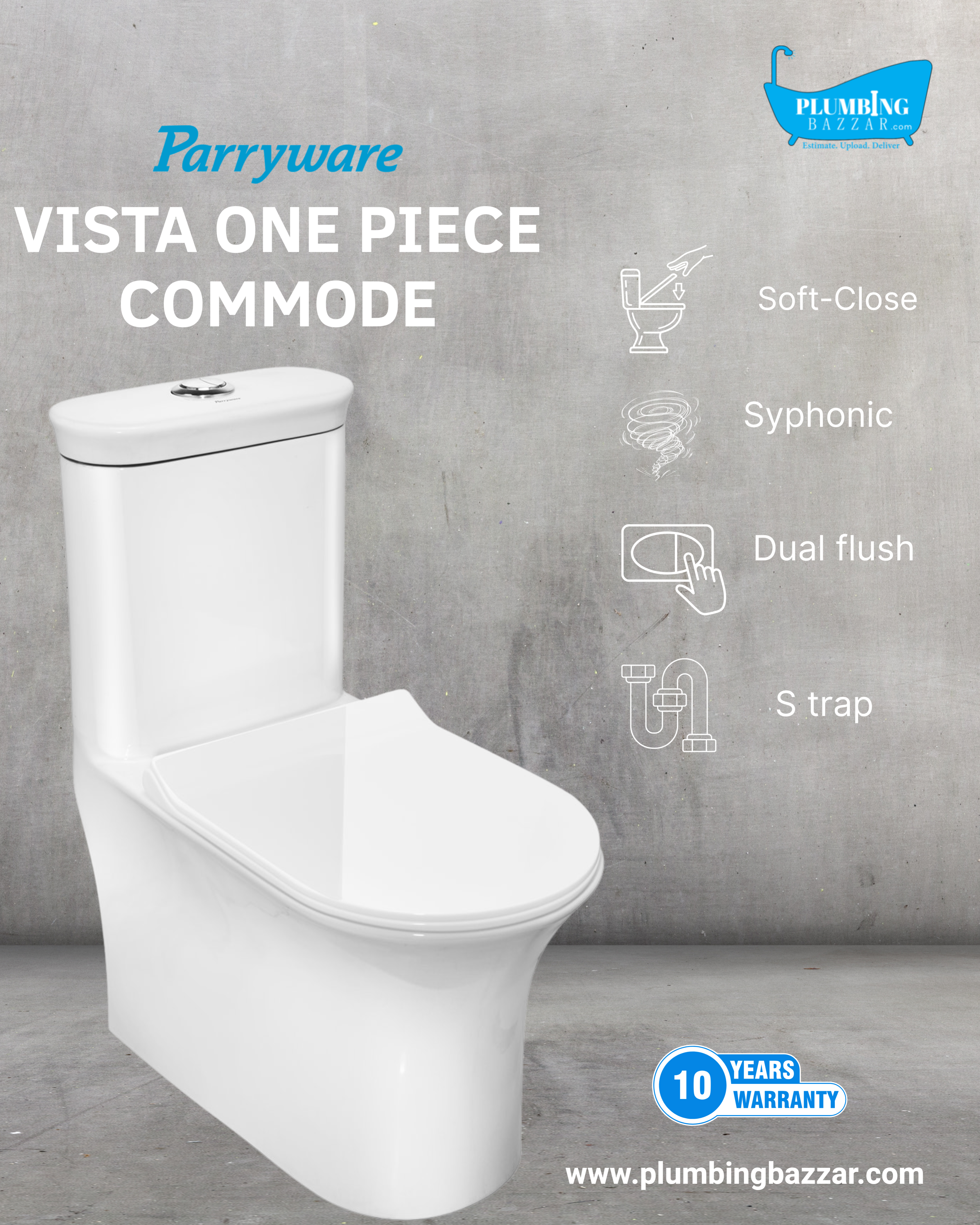 Product Type: Single Piece Dual Flush WC With Soft Close Slim Seat Cover,