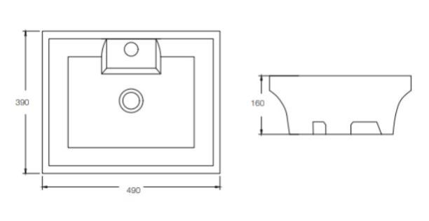 Table Top Rectangle Shaped Wash Basin | C041E | Size: 490 x 390 x 160 mm