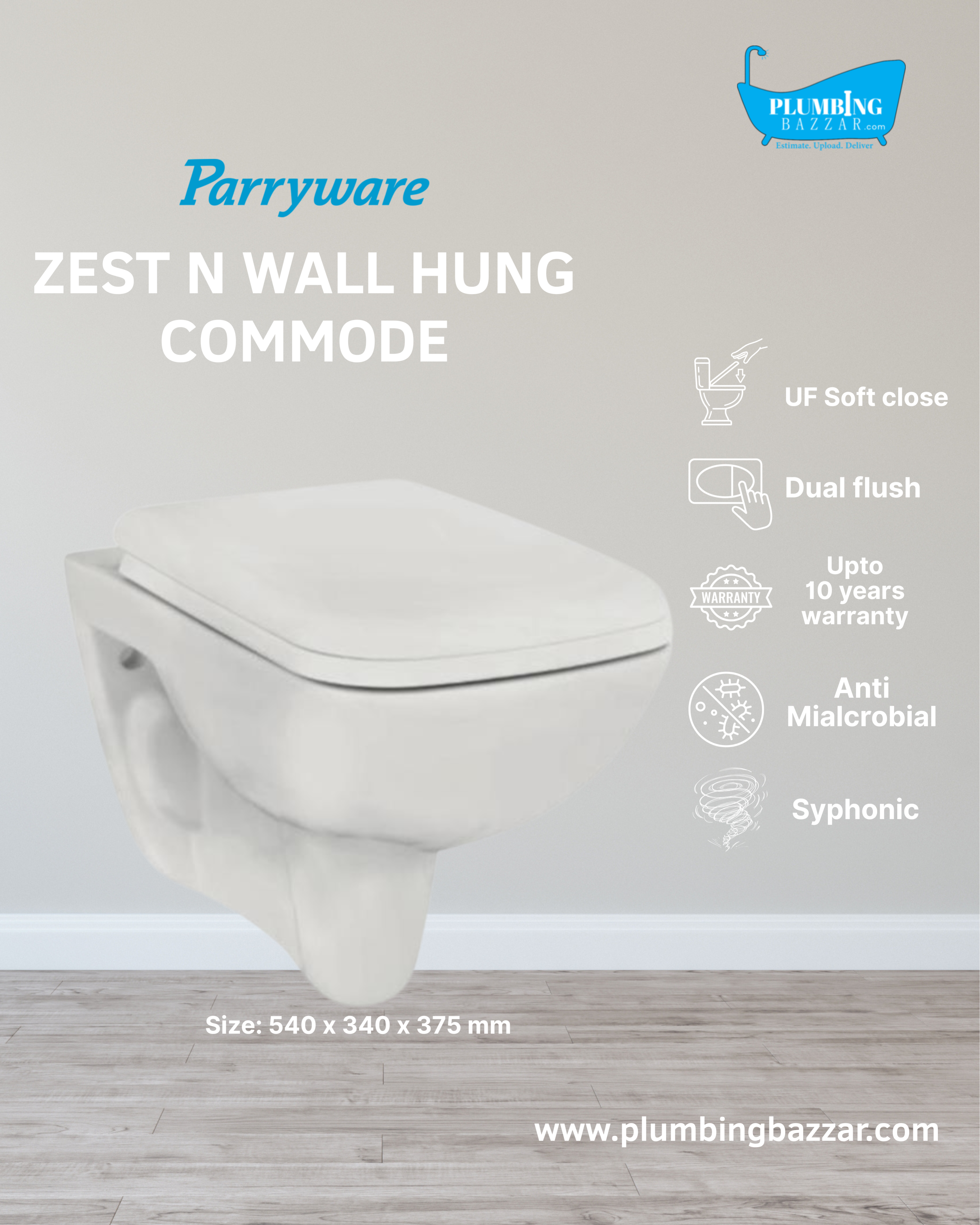 PARRYWARE ZEST N WALL HUNG COMMODE