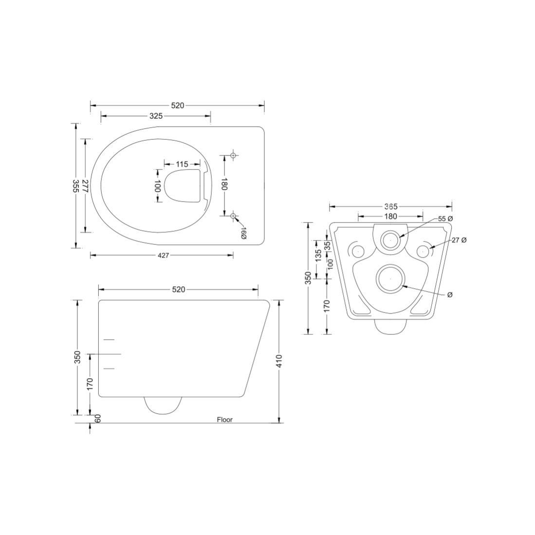 Clean Rim Wall Hung With Fisher Set Rim-Free in white | KS118-R | Size : 520x355x350 P-Trap : 230 mm